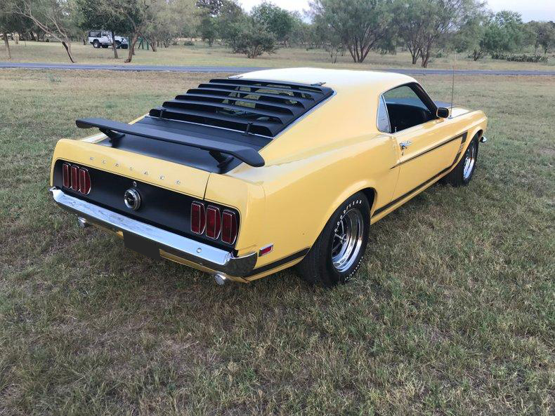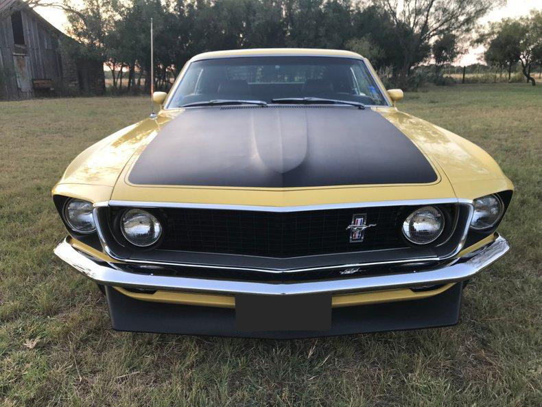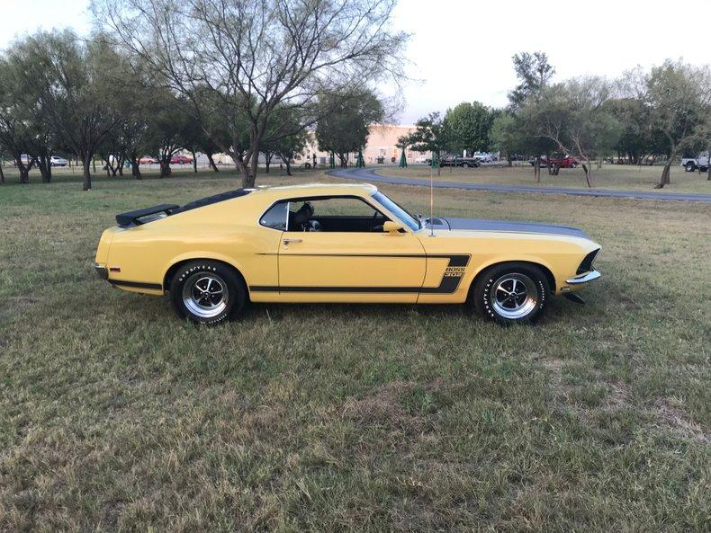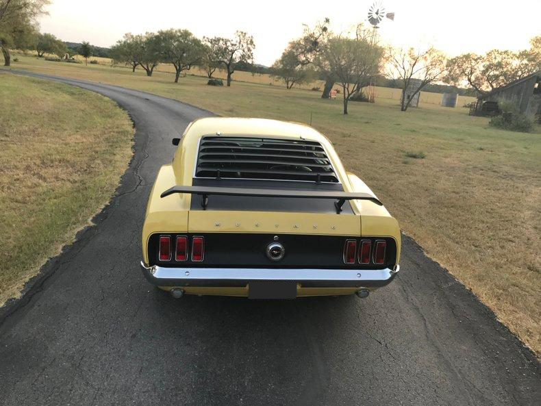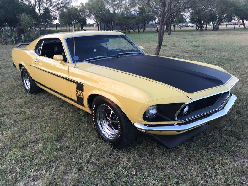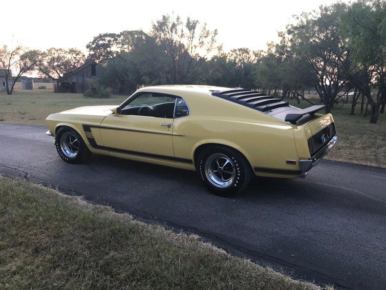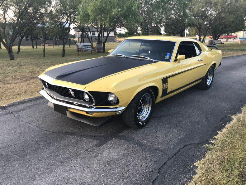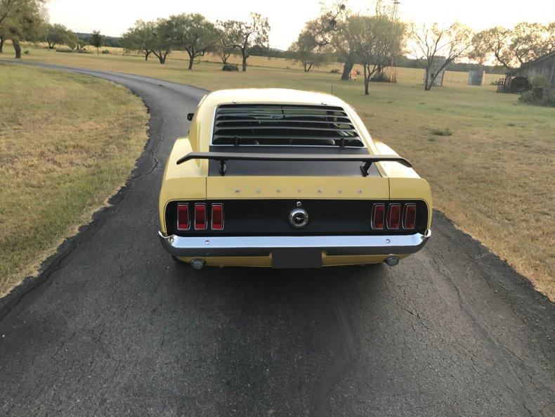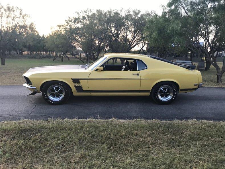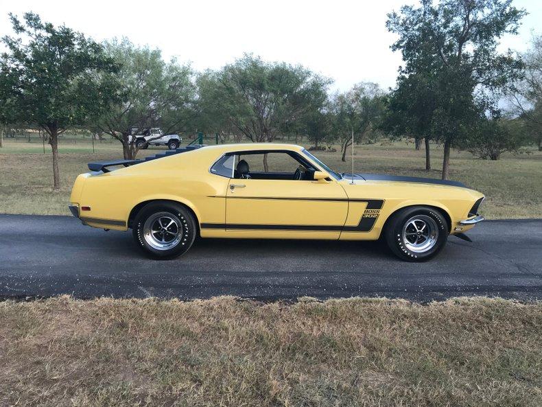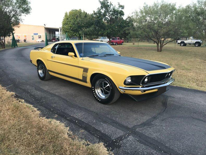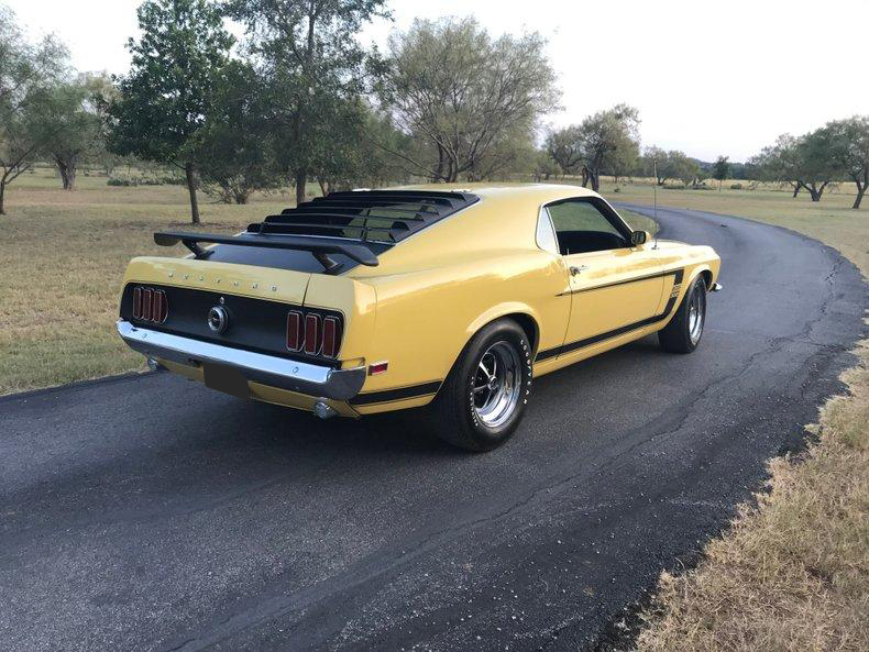 This 1969 Ford Mustang Boss 302 is a rare high-performance muscle car, one of just 1,628 produced that year. Powered by a 302ci V8 engine delivering 290 horsepower, paired with a 4-speed manual transmission, it was designed for SCCA Trans-Am racing. Distinctive features include black C-stripes, a front chin spoiler, and a blackout hood. With its limited production and racing pedigree, the Boss 302 is a highly collectible classic.