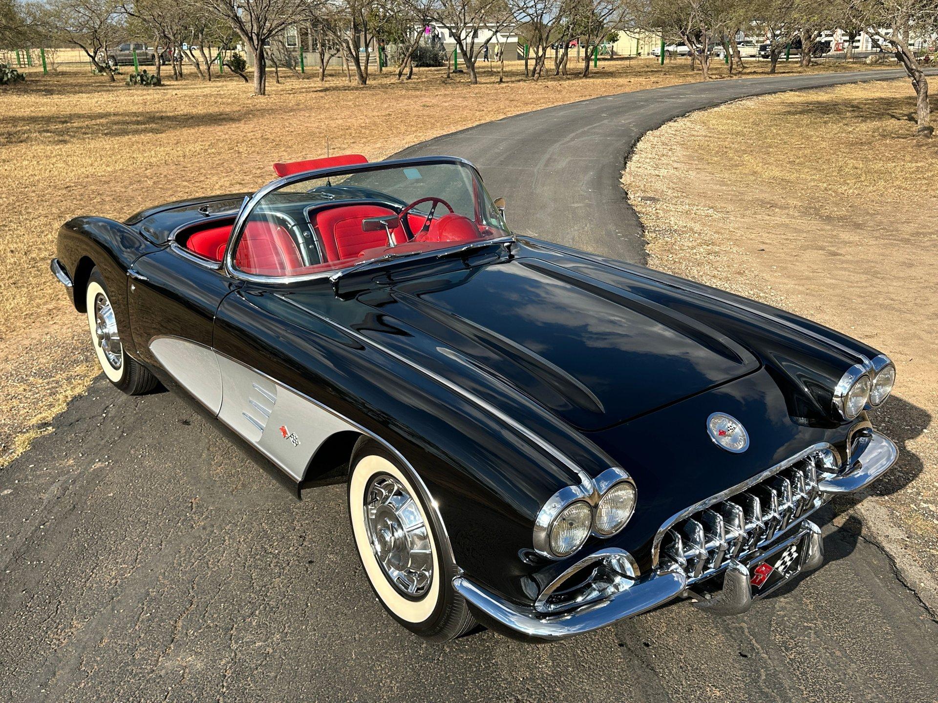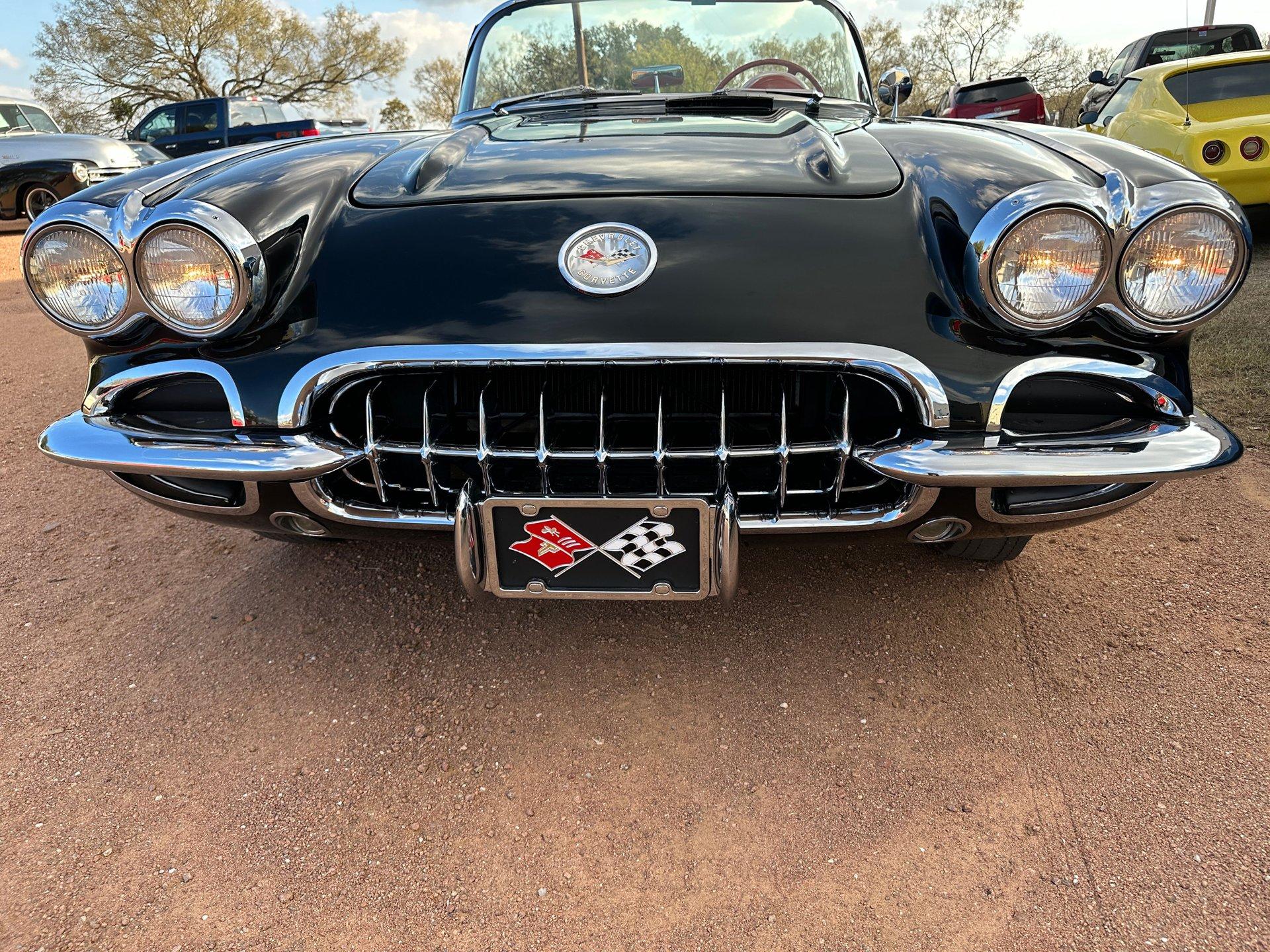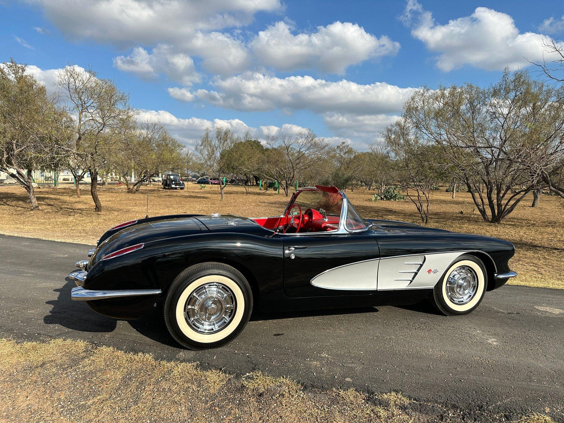 This 1959 Chevrolet Corvette is a beautifully styled 2-door convertible finished in classic Tuxedo Black with a striking red vinyl interior. It�s powered by a 283 V8 gasoline engine, delivering the smooth, spirited performance that defined early American sports cars. Showing just 36,930 miles, this Corvette is a well-preserved example of late-1950s design and engineering. The interior features bucket seats with a floor-mounted shifter and no center console, maintaining its period-correct sportiness. A true icon, this Corvette blends elegance, performance, and timeless American style.