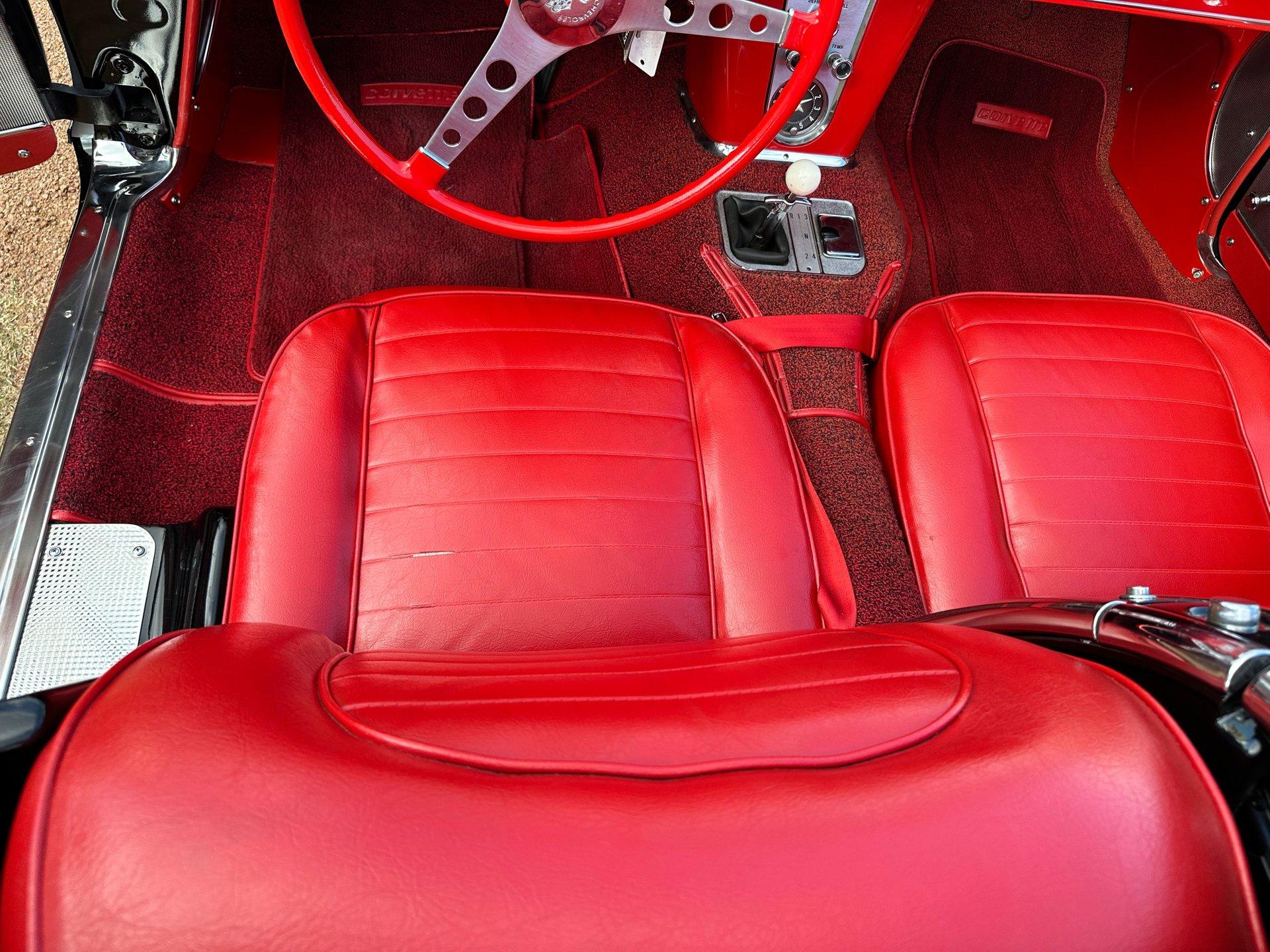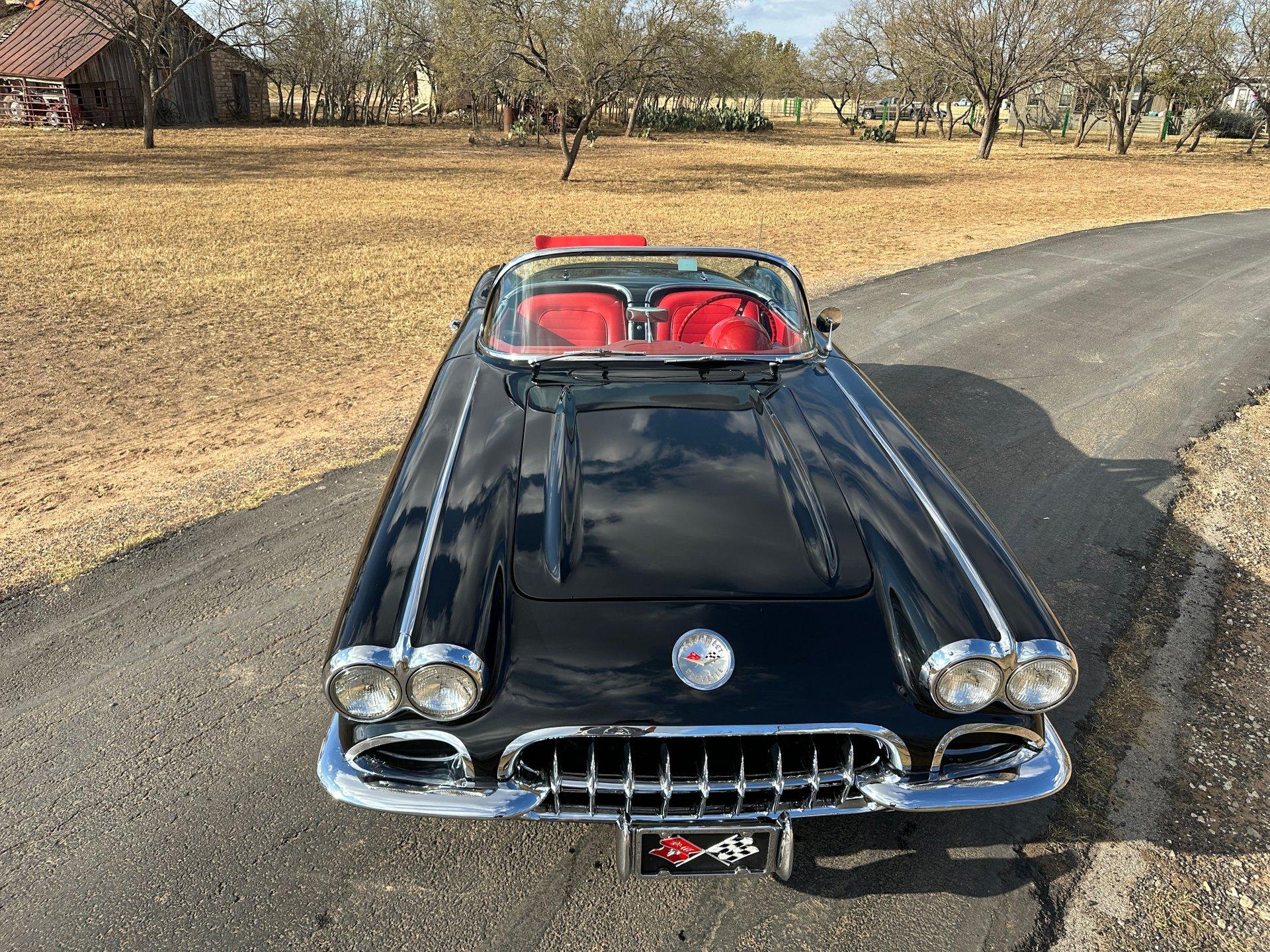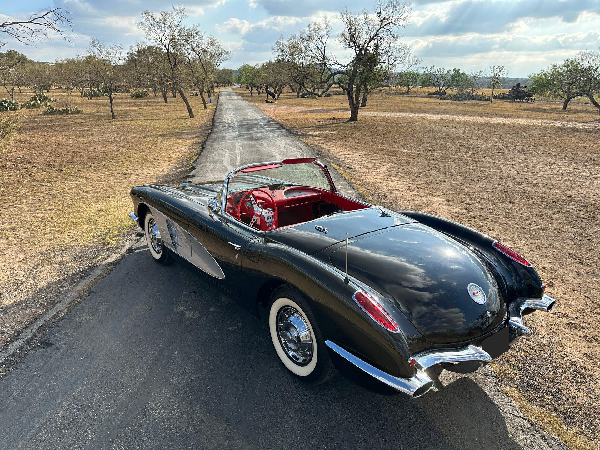 This 1959 Chevrolet Corvette is a beautifully styled 2-door convertible finished in classic Tuxedo Black with a striking red vinyl interior. It�s powered by a 283 V8 gasoline engine, delivering the smooth, spirited performance that defined early American sports cars. Showing just 36,930 miles, this Corvette is a well-preserved example of late-1950s design and engineering. The interior features bucket seats with a floor-mounted shifter and no center console, maintaining its period-correct sportiness. A true icon, this Corvette blends elegance, performance, and timeless American style.