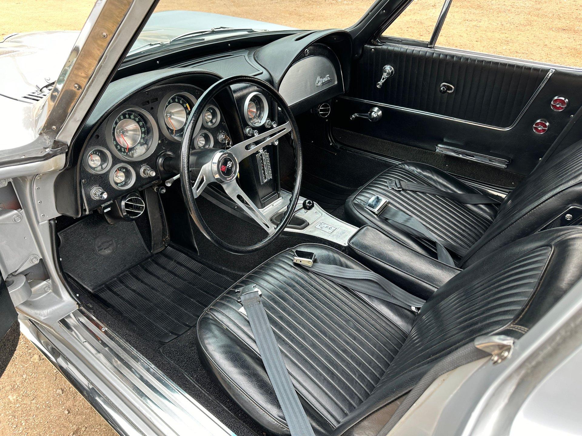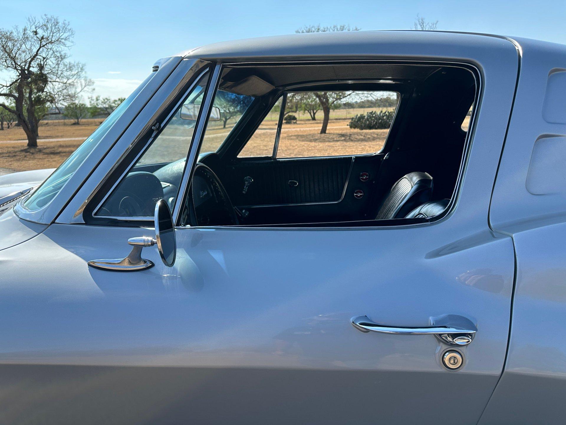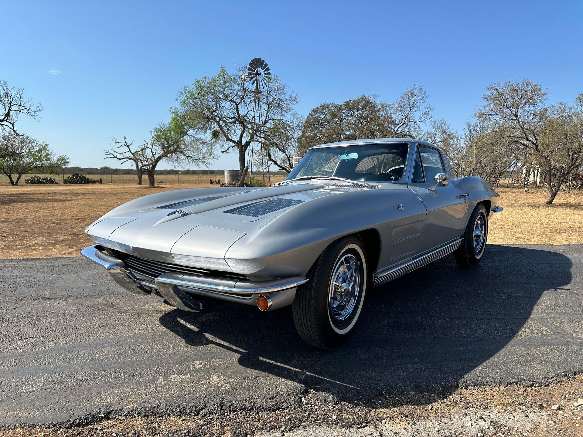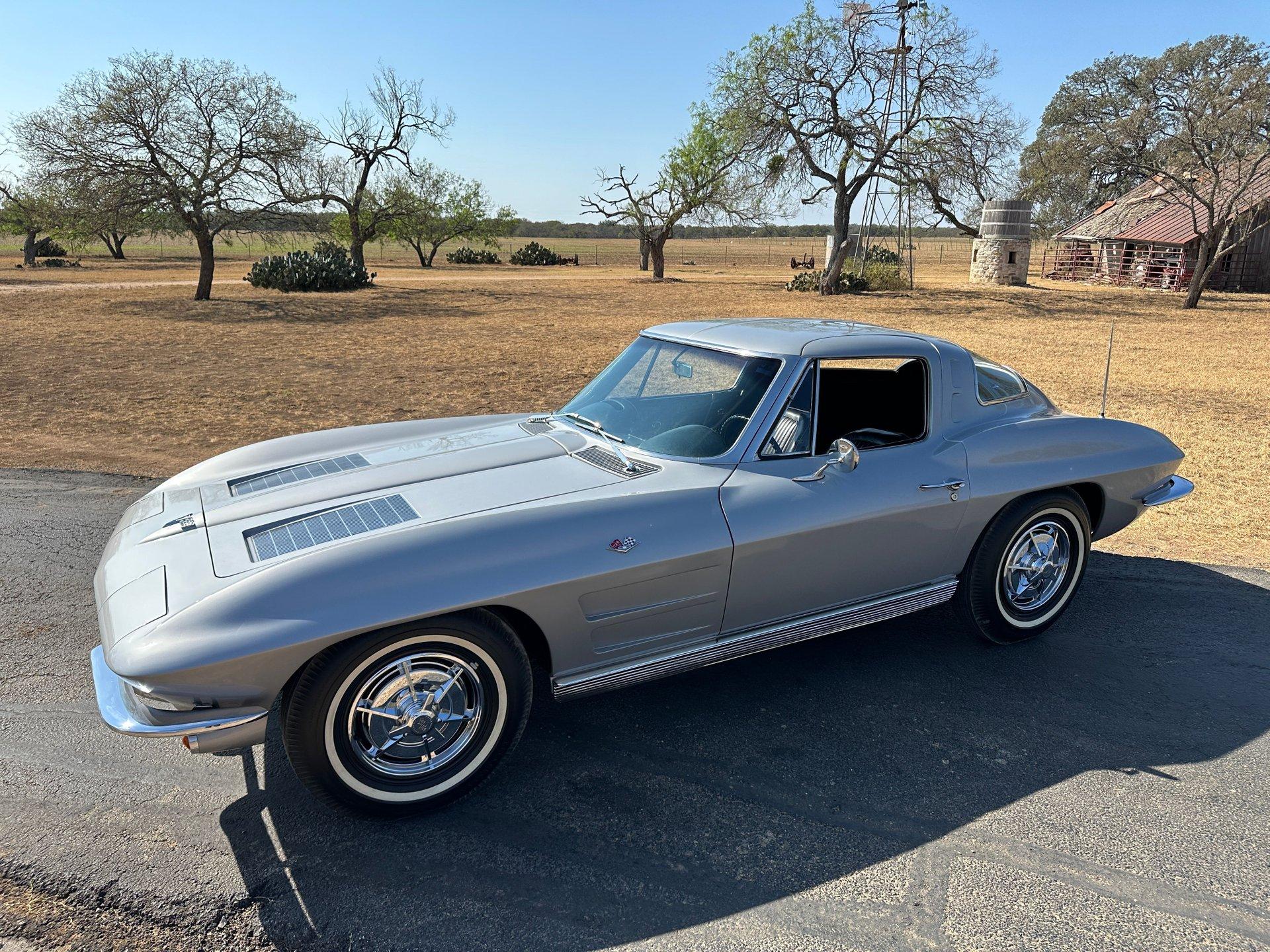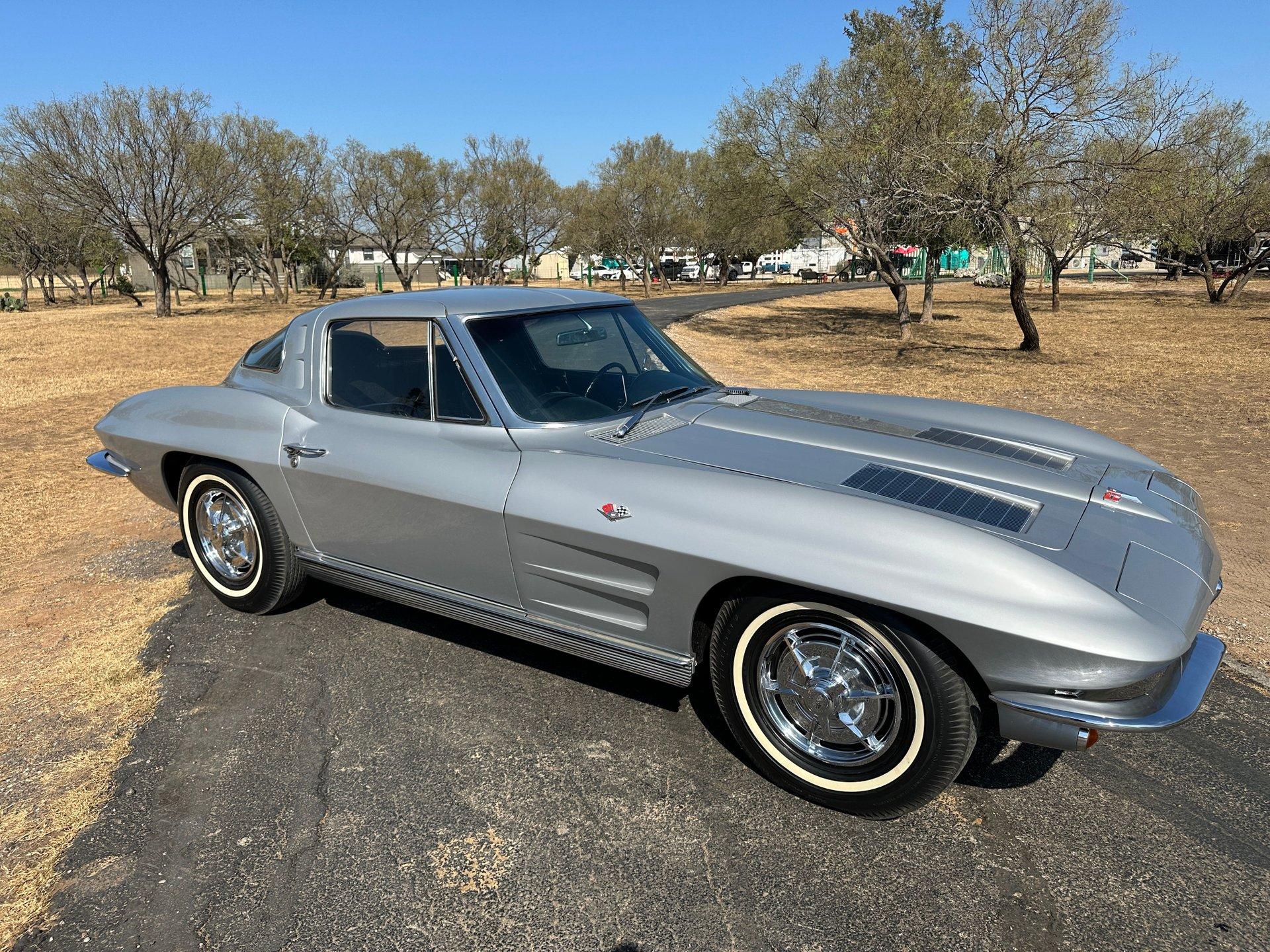 This 1963 Chevrolet Corvette coupe is finished in elegant Sebring Silver Metallic over a black vinyl interior, showcasing the sleek lines of its iconic split-window design. Powered by a 327 V8 gasoline engine, it delivers the performance and sound that made the C2 Corvette a legend. With 63,964 miles, this classic remains a strong example of mid-century American sports car excellence. Inside, bucket seats with a center console and console-mounted shifter provide a focused, driver-centric layout. A true collectible, this '63 Corvette blends style, power, and unmatched historical significance.