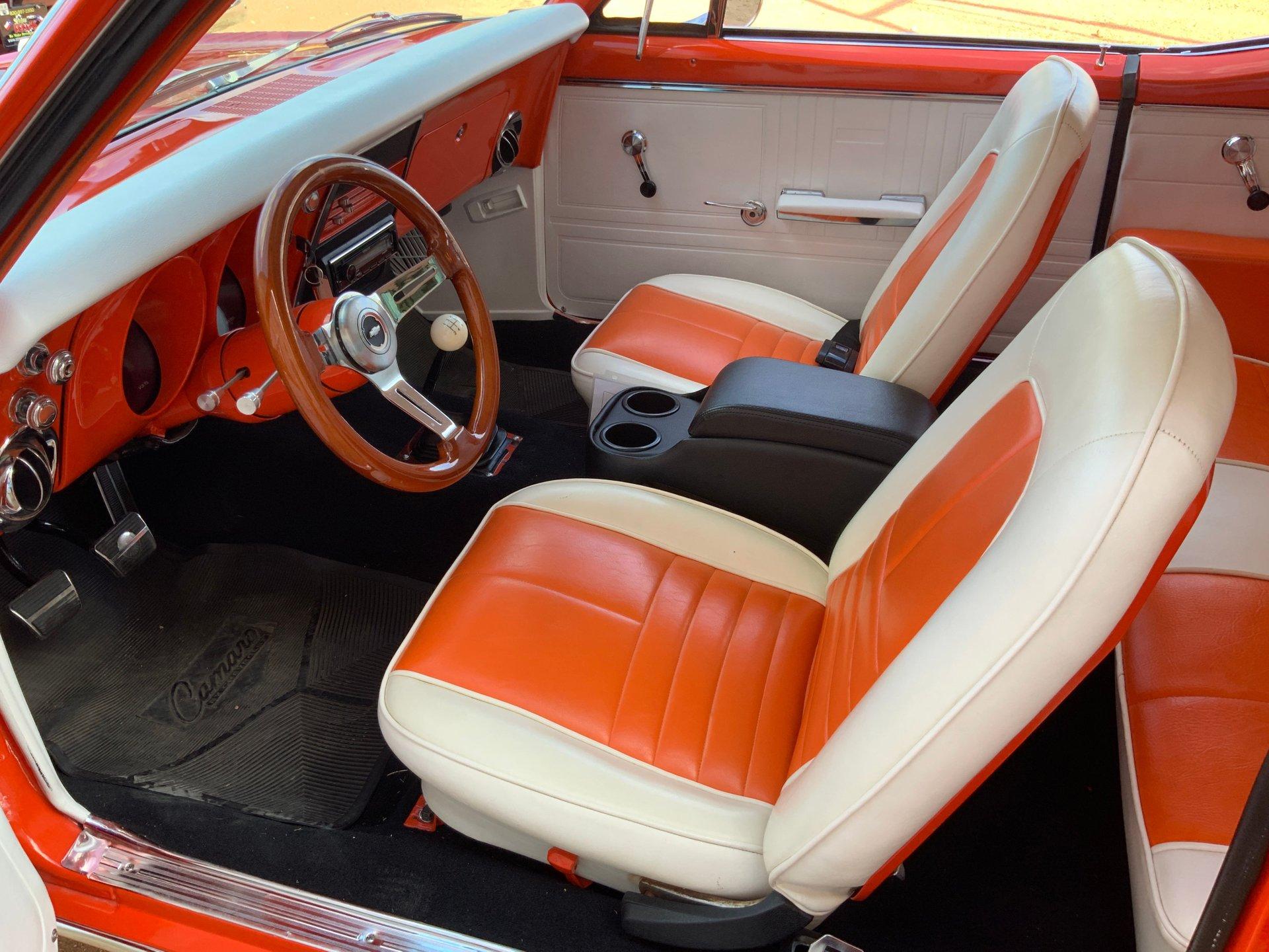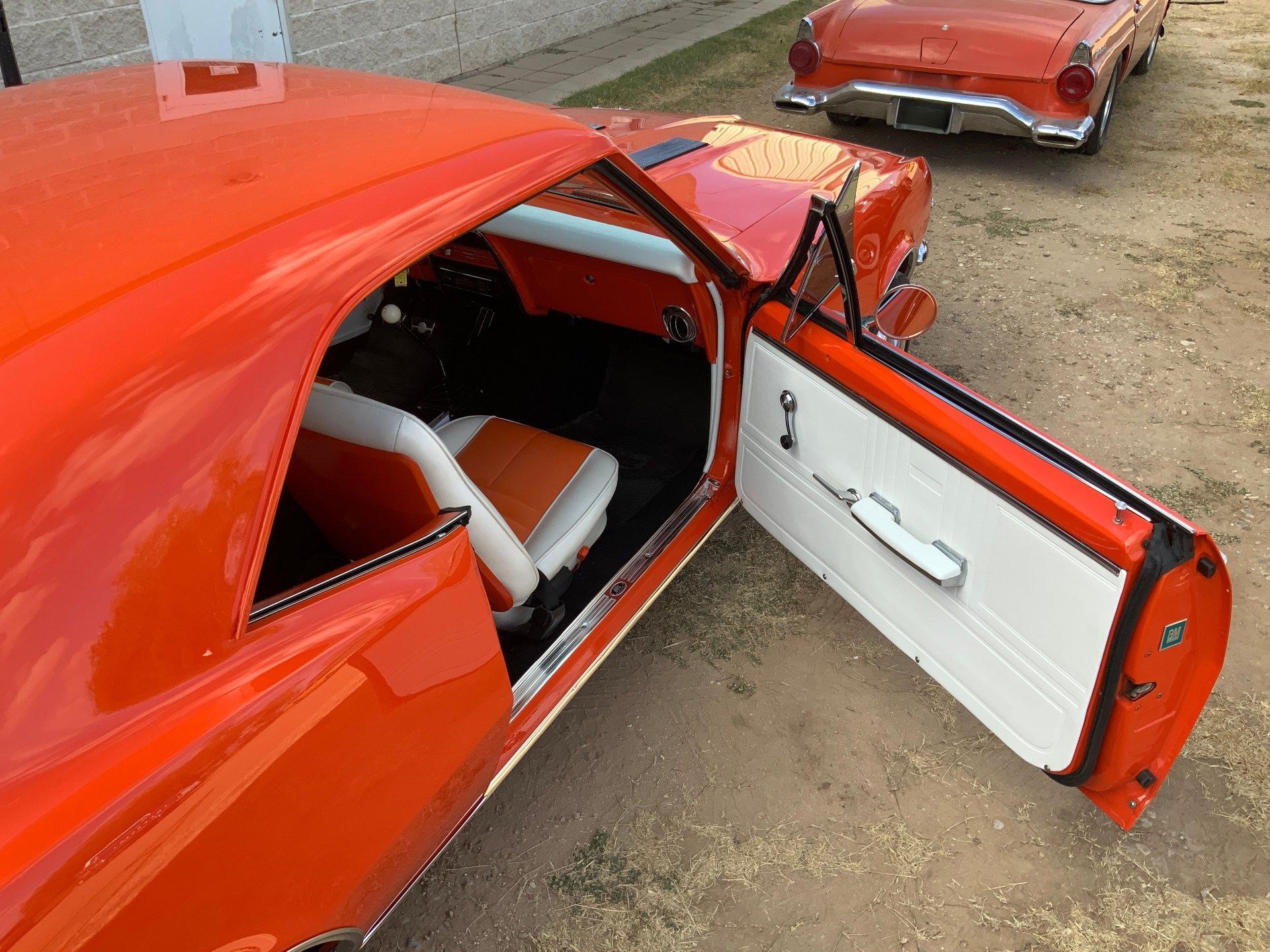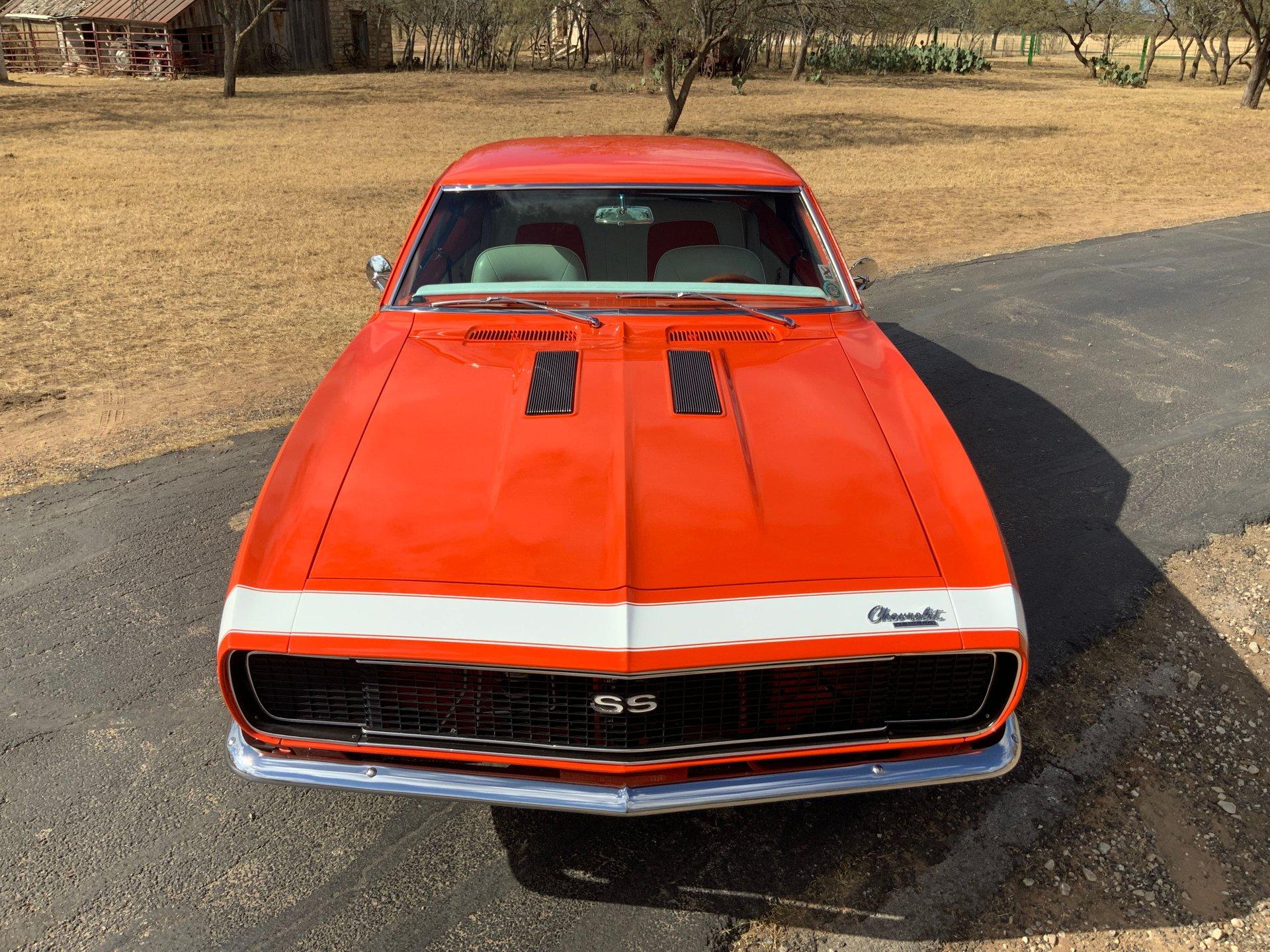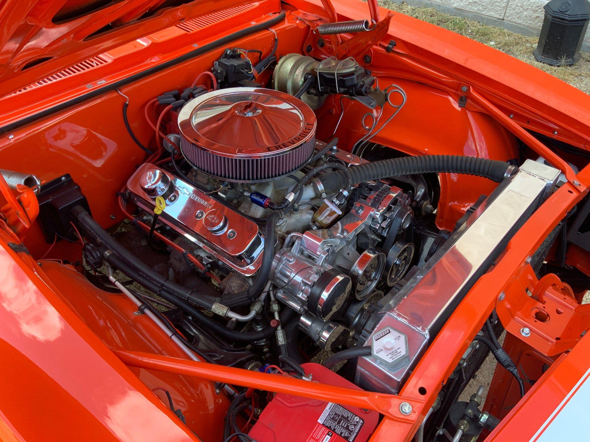 This magnificent Hugger Orange 1967 Camaro RS/SS is capable of performing all 3 of those tasks with aplomb. Lift the stylish hood and you'll find a strong Chevy ZZ4 350 V8 crate engine that's sporting an Edelbrock carburetor, a Griffin aluminum radiator with dual SPAL fans and shroud, an aluminum water pump, MSD ignition, and a Front Runner accessory drive system. Additional features include Steeroids power rack and pinion steering, power front disc brakes, Vintage Air A/C, Tremec TKO600 5-speed manual transmission, 12-bolt rear end with 3.73 Posi gears, a Heidts 4-link rear suspension with adjustable coilovers, premium Del-A-Lum bushings, a Painless Performance wiring harness and fuse box, Dynamat insulation on floors, doors, and roof, a powder coated subframe, Gator Guard bed liner on floor and trunk pans, SoffSeal weatherstripping, a Kenwood audio system, Ididit tilt steering column with custom wood wheel, Dakota Digital gauges, and Foose alloy wheels wearing Nitto shoes (225/45ZR17 F, 245/45ZR17 R). During its professional rotisserie restoration new paint, chrome mouldings, front and rear glass, carpets, seats, headliner and door panels were installed.