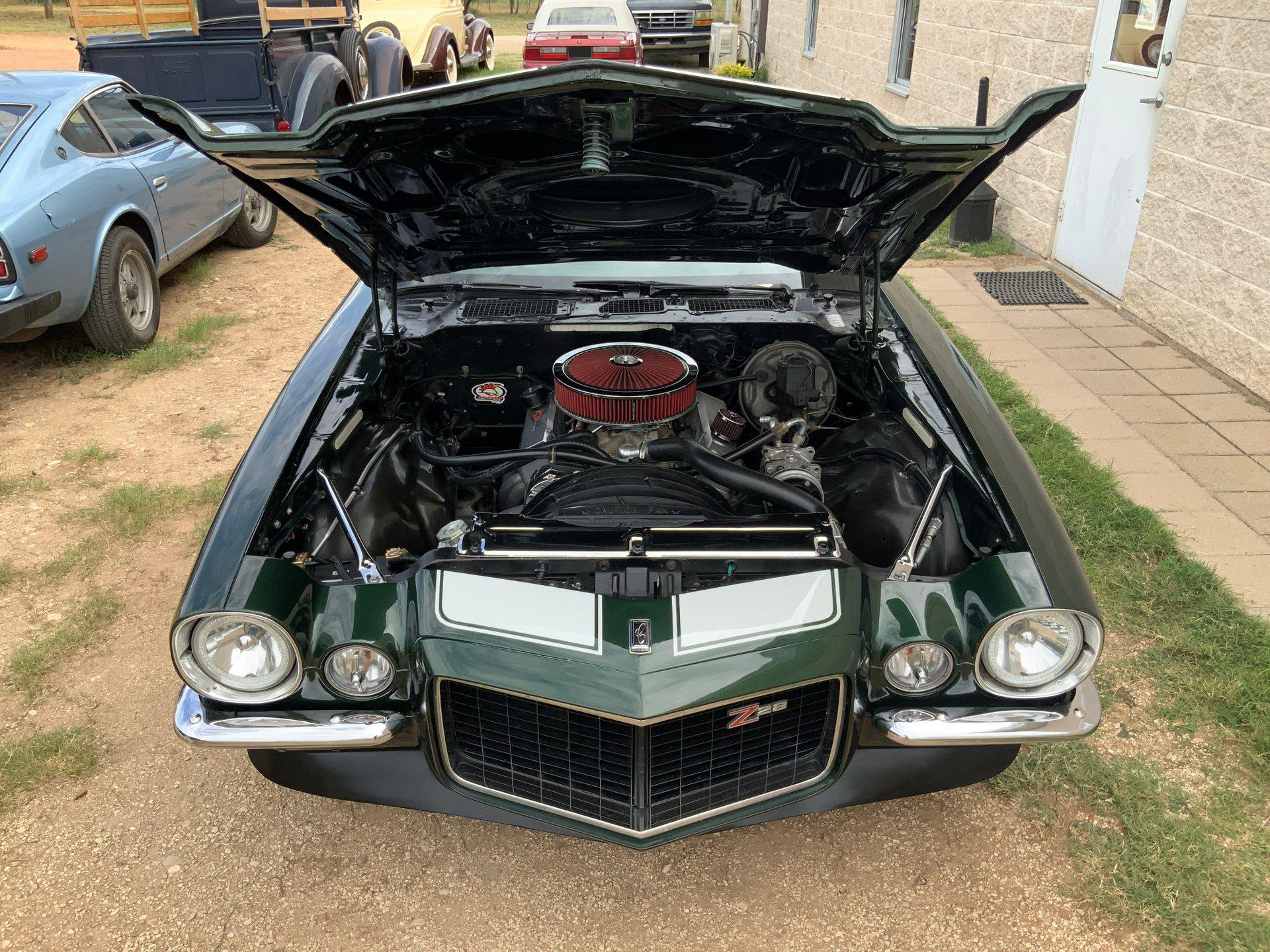 This 1970 Chevrolet Camaro coupe is finished in deep Forest Green with a black vinyl interior, giving it a bold and classic muscle car presence. Under the hood sits a powerful 383 Stroker V8 engine, offering enhanced performance and aggressive sound. With only 9,298 miles, this Camaro is a low-mile example of second-generation American muscle. The interior features bucket seats, a center console, and a console-mounted shifter, delivering a true performance-focused driving environment. Aggressive, stylish, and built to perform, this Camaro is a standout from the golden era of muscle cars.